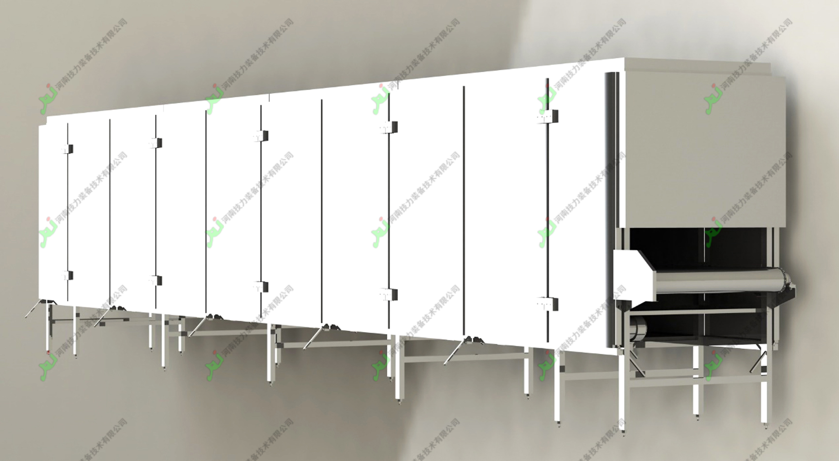 4. 干燥能力可达到20吨/小时。 5. 独特设计,保温防护严密,节能和易于维护。 6. 外观漂亮,造型考究。 7. 用户可选择不同的机身材料和输送网板材料,以满足不同的场合。 |
